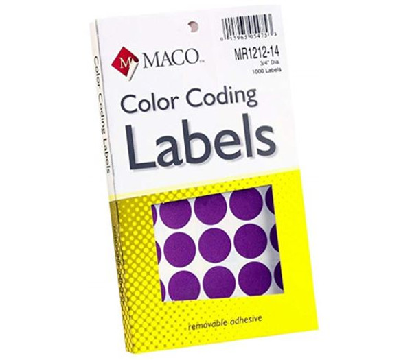 / Maco Color Coding Round Labels 3/4 Pur Pk/1000