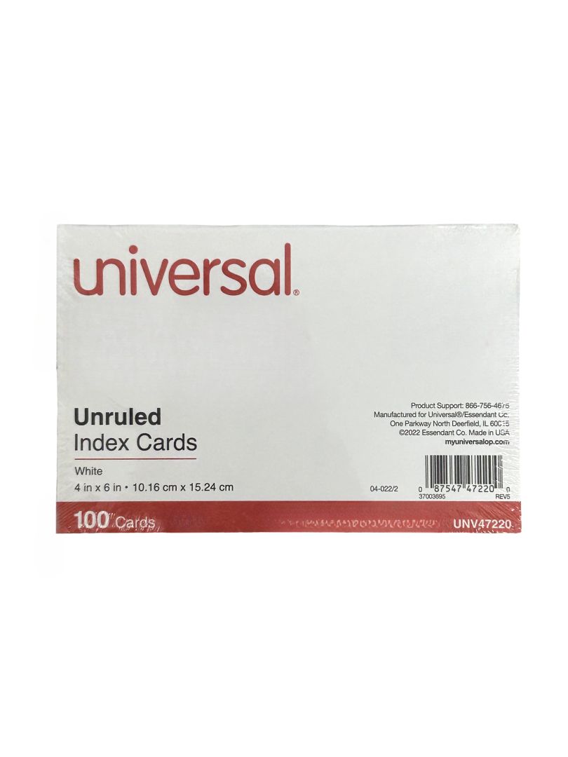 / Unv Index Cards White 4 x 6 Plain